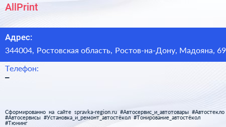 AllPrint по адресу 344004, Ростовская область, Ростов-на-Дону, Мадояна, 69 в дальнейшем Организация, размещена в следующих категориях: