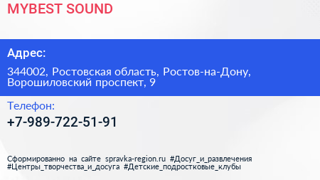 MYBEST SOUND по адресу 344002, Ростовская область, Ростов-на-Дону, Ворошиловский проспект, 9 в дальнейшем Организация, размещена в следующих категориях: