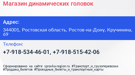 Магазин динамических головок по адресу 344001, Ростовская область, Ростов-на-Дону, Кручинина, 69 в дальнейшем Организация, размещена в следующих категориях: