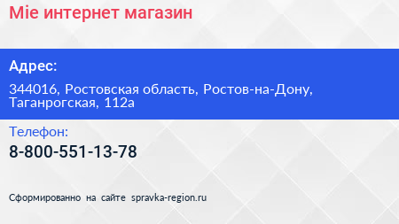 Mie, интернет-магазин по адресу 344016, Ростовская область, Ростов-на-Дону, Таганрогская, 112а в дальнейшем Организация, размещена в следующих категориях: