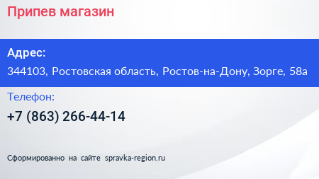 Припев, магазин по адресу 344103, Ростовская область, Ростов-на-Дону, Зорге, 58а в дальнейшем Организация, размещена в следующих категориях:
