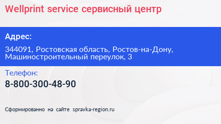 Wellprint service, сервисный центр по адресу 344091, Ростовская область, Ростов-на-Дону, Машиностроительный переулок, 3 в дальнейшем Организация, размещена в следующих категориях: