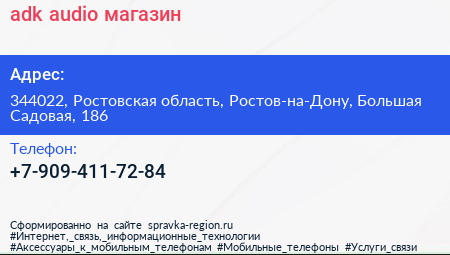 adk.audio, магазин по адресу 344022, Ростовская область, Ростов-на-Дону, Большая Садовая, 186 в дальнейшем Организация, размещена в следующих категориях: