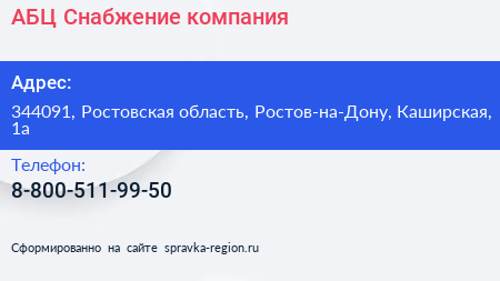 АБЦ Снабжение, компания по адресу 344091, Ростовская область, Ростов-на-Дону, Каширская, 1а в дальнейшем Организация, размещена в следующих категориях: