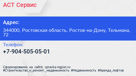 АСТ Сервис по адресу 344000, Ростовская область, Ростов-на-Дону, Тельмана, 72 в дальнейшем Организация, размещена в следующих категориях:
