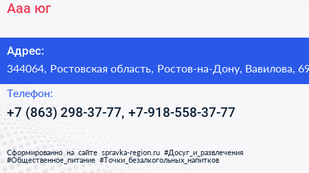 Ааа-юг по адресу 344064, Ростовская область, Ростов-на-Дону, Вавилова, 69 в дальнейшем Организация, размещена в следующих категориях: