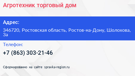 Агротехник, торговый дом по адресу 346720, Ростовская область, Ростов-на-Дону, Шолохова, 3а в дальнейшем Организация, размещена в следующих категориях: