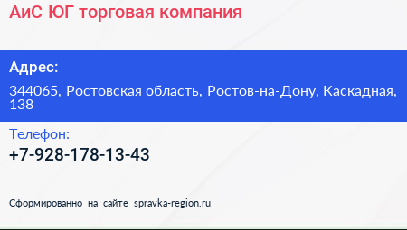 АиС-ЮГ, торговая компания по адресу 344065, Ростовская область, Ростов-на-Дону, Каскадная, 138 в дальнейшем Организация, размещена в следующих категориях: