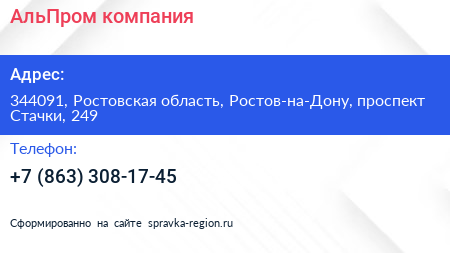 АльПром, компания по адресу 344091, Ростовская область, Ростов-на-Дону, проспект Стачки, 249 в дальнейшем Организация, размещена в следующих категориях: