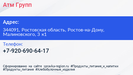 Атм Групп по адресу 344091, Ростовская область, Ростов-на-Дону, Малиновского, 3 к1 в дальнейшем Организация, размещена в следующих категориях: