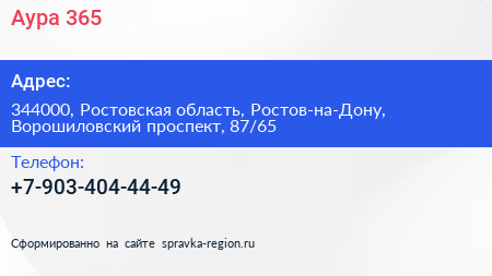 Аура 365 по адресу 344000, Ростовская область, Ростов-на-Дону, Ворошиловский проспект, 87/65 в дальнейшем Организация, размещена в следующих категориях: