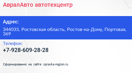 АвралАвто, автотехцентр по адресу 344033, Ростовская область, Ростов-на-Дону, Портовая, 369 в дальнейшем Организация, размещена в следующих категориях: