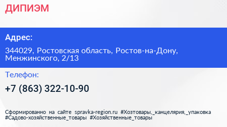 ДИПИЭМ по адресу 344029, Ростовская область, Ростов-на-Дону, Менжинского, 2/13 в дальнейшем Организация, размещена в следующих категориях: