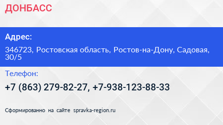 ДОНБАСС по адресу 346723, Ростовская область, Ростов-на-Дону, Садовая, 30/5 в дальнейшем Организация, размещена в следующих категориях: