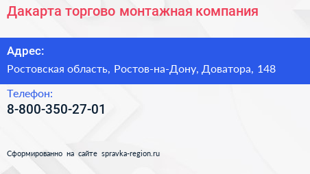 Дакарта, торгово-монтажная компания по адресу Ростовская область, Ростов-на-Дону, Доватора, 148 в дальнейшем Организация, размещена в следующих категориях: