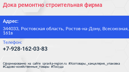 Дока, ремонтно-строительная фирма по адресу 344033, Ростовская область, Ростов-на-Дону, Всесоюзная, 161в в дальнейшем Организация, размещена в следующих категориях: