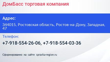 ДомБасс, торговая компания по адресу 344015, Ростовская область, Ростов-на-Дону, Западная, 47 в дальнейшем Организация, размещена в следующих категориях:
