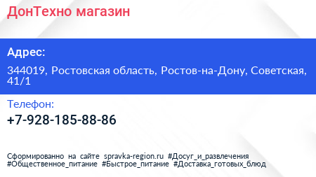 ДонТехно, магазин по адресу 344019, Ростовская область, Ростов-на-Дону, Советская, 41/1 в дальнейшем Организация, размещена в следующих категориях: