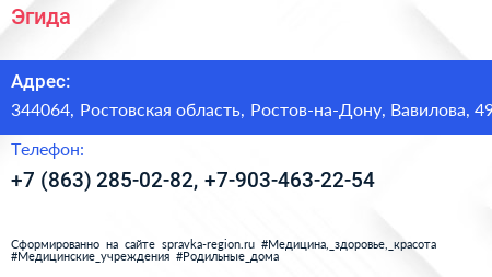 Эгида по адресу 344064, Ростовская область, Ростов-на-Дону, Вавилова, 49 в дальнейшем Организация, размещена в следующих категориях: