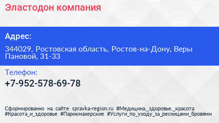 Эластодон, компания по адресу 344029, Ростовская область, Ростов-на-Дону, Веры Пановой, 31-33 в дальнейшем Организация, размещена в следующих категориях: