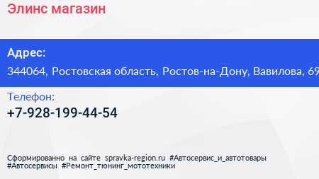 Элинс, магазин по адресу 344064, Ростовская область, Ростов-на-Дону, Вавилова, 69 в дальнейшем Организация, размещена в следующих категориях:
