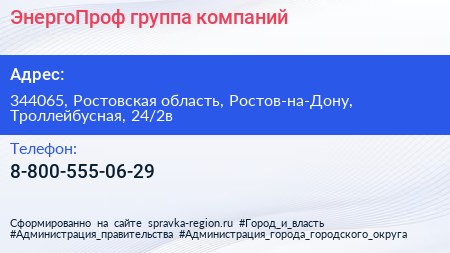 ЭнергоПроф, группа компаний по адресу 344065, Ростовская область, Ростов-на-Дону, Троллейбусная, 24/2в в дальнейшем Организация, размещена в следующих категориях: