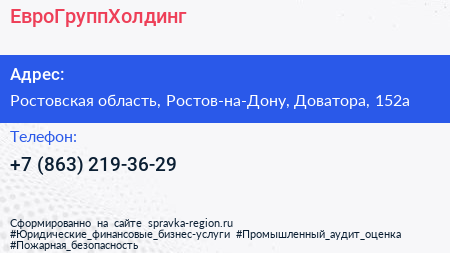ЕвроГруппХолдинг по адресу Ростовская область, Ростов-на-Дону, Доватора, 152а в дальнейшем Организация, размещена в следующих категориях: