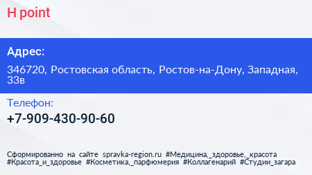 H-point по адресу 346720, Ростовская область, Ростов-на-Дону, Западная, 33в в дальнейшем Организация, размещена в следующих категориях: