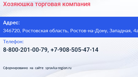 Хозяюшка, торговая компания по адресу 346720, Ростовская область, Ростов-на-Дону, Западная, 4а в дальнейшем Организация, размещена в следующих категориях: