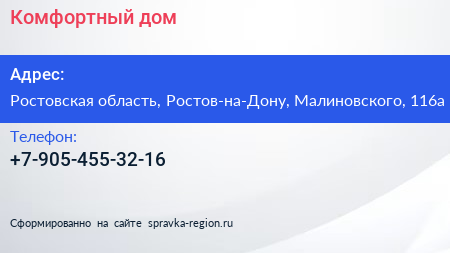 Комфортный дом по адресу Ростовская область, Ростов-на-Дону, Малиновского, 116а в дальнейшем Организация, размещена в следующих категориях: