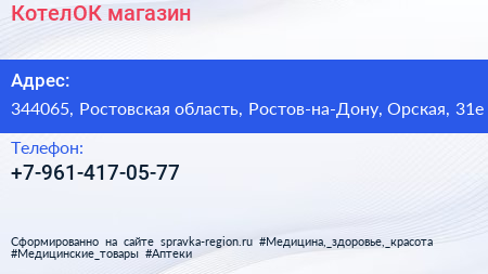 КотелОК, магазин по адресу 344065, Ростовская область, Ростов-на-Дону, Орская, 31е в дальнейшем Организация, размещена в следующих категориях: