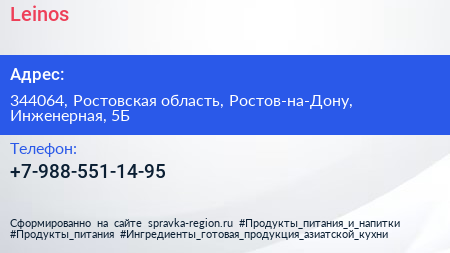 Leinos по адресу 344064, Ростовская область, Ростов-на-Дону, Инженерная, 5Б в дальнейшем Организация, размещена в следующих категориях: