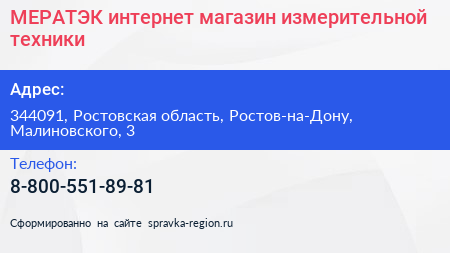 МЕРАТЭК, интернет-магазин измерительной техники по адресу 344091, Ростовская область, Ростов-на-Дону, Малиновского, 3 в дальнейшем Организация, размещена в следующих категориях: