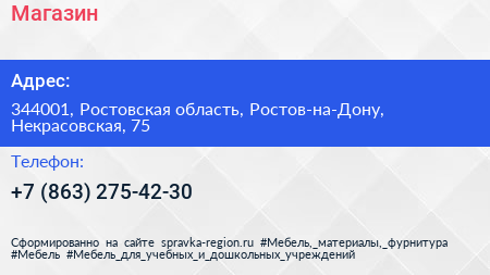 Магазин по адресу 344001, Ростовская область, Ростов-на-Дону, Некрасовская, 75 в дальнейшем Организация, размещена в следующих категориях: