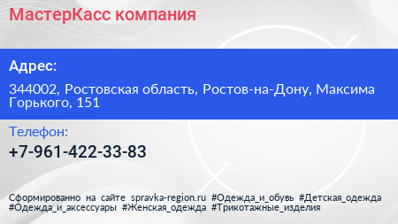 МастерКасс, компания по адресу 344002, Ростовская область, Ростов-на-Дону, Максима Горького, 151 в дальнейшем Организация, размещена в следующих категориях: