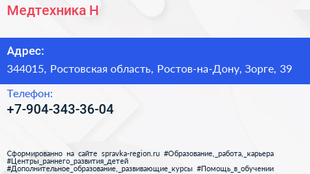 Медтехника Н по адресу 344015, Ростовская область, Ростов-на-Дону, Зорге, 39 в дальнейшем Организация, размещена в следующих категориях:
