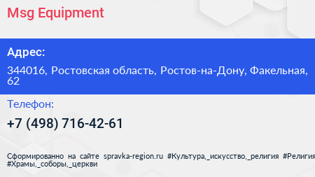Msg Equipment по адресу 344016, Ростовская область, Ростов-на-Дону, Факельная, 62 в дальнейшем Организация, размещена в следующих категориях: