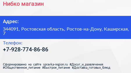 Нибко, магазин по адресу 344091, Ростовская область, Ростов-на-Дону, Каширская, 7 в дальнейшем Организация, размещена в следующих категориях: