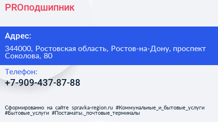 PROподшипник по адресу 344000, Ростовская область, Ростов-на-Дону, проспект Соколова, 80 в дальнейшем Организация, размещена в следующих категориях: