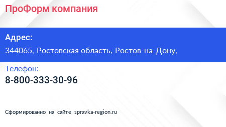 ПроФорм, компания по адресу 344065, Ростовская область, Ростов-на-Дону, в дальнейшем Организация, размещена в следующих категориях: