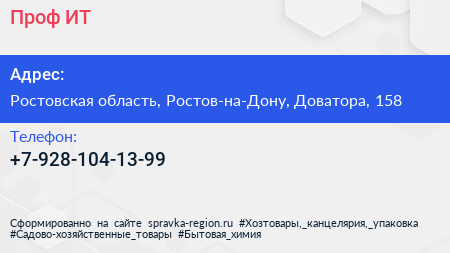 Проф ИТ по адресу Ростовская область, Ростов-на-Дону, Доватора, 158 в дальнейшем Организация, размещена в следующих категориях: