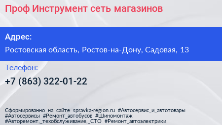 Проф-Инструмент, сеть магазинов по адресу Ростовская область, Ростов-на-Дону, Садовая, 13 в дальнейшем Организация, размещена в следующих категориях: