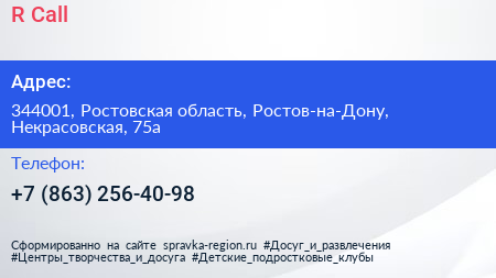 R-Call по адресу 344001, Ростовская область, Ростов-на-Дону, Некрасовская, 75а в дальнейшем Организация, размещена в следующих категориях: