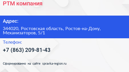 РТМ, компания по адресу 344020, Ростовская область, Ростов-на-Дону, Механизаторов, 5/1 в дальнейшем Организация, размещена в следующих категориях: