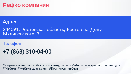 Рефко, компания по адресу 344091, Ростовская область, Ростов-на-Дону, Малиновского, 3г в дальнейшем Организация, размещена в следующих категориях: