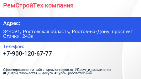 РемСтройТех, компания по адресу 344091, Ростовская область, Ростов-на-Дону, проспект Стачки, 243к в дальнейшем Организация, размещена в следующих категориях: