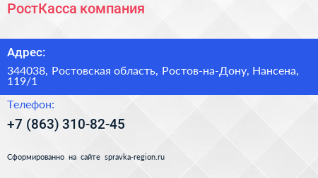 РостКасса, компания по адресу 344038, Ростовская область, Ростов-на-Дону, Нансена, 119/1 в дальнейшем Организация, размещена в следующих категориях: