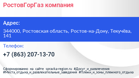 РостовГорГаз, компания по адресу 344000, Ростовская область, Ростов-на-Дону, Текучёва, 141 в дальнейшем Организация, размещена в следующих категориях: