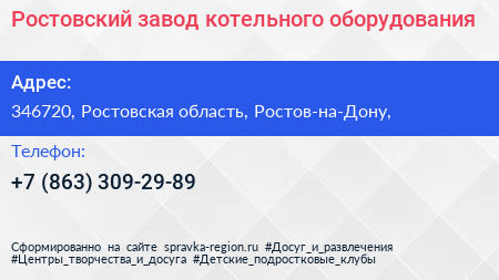 Ростовский завод котельного оборудования по адресу 346720, Ростовская область, Ростов-на-Дону, в дальнейшем Организация, размещена в следующих категориях: