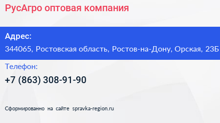 РусАгро, оптовая компания по адресу 344065, Ростовская область, Ростов-на-Дону, Орская, 23Б в дальнейшем Организация, размещена в следующих категориях: